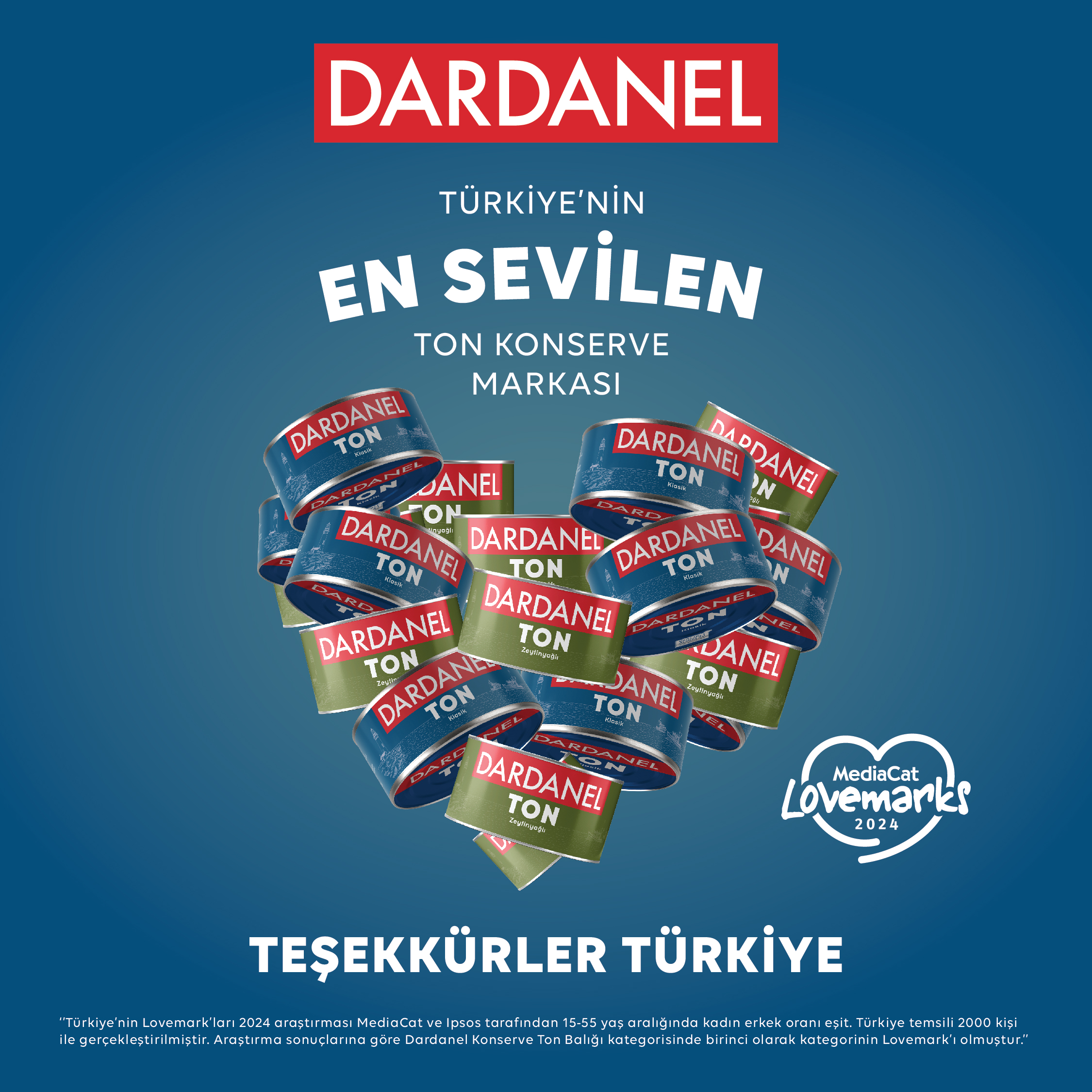 Bu sene MediaCat öncülüğünde Ipsos tarafından 17’ncisi gerçekleştirilen Türkiye’nin Lovemark’ları araştırmasında konserve ton balığı kategorisinde Türkiye’nin en sevilen markası Dardanel oldu. Dardanel, yapılan araştırmada yenilikçi ürün çeşitliliği, tüketici hayatında yer edinmiş olan marka kimliği ve tüketici beklentilerini karşılayan bir marka olması ile ön plana çıkıyor.
